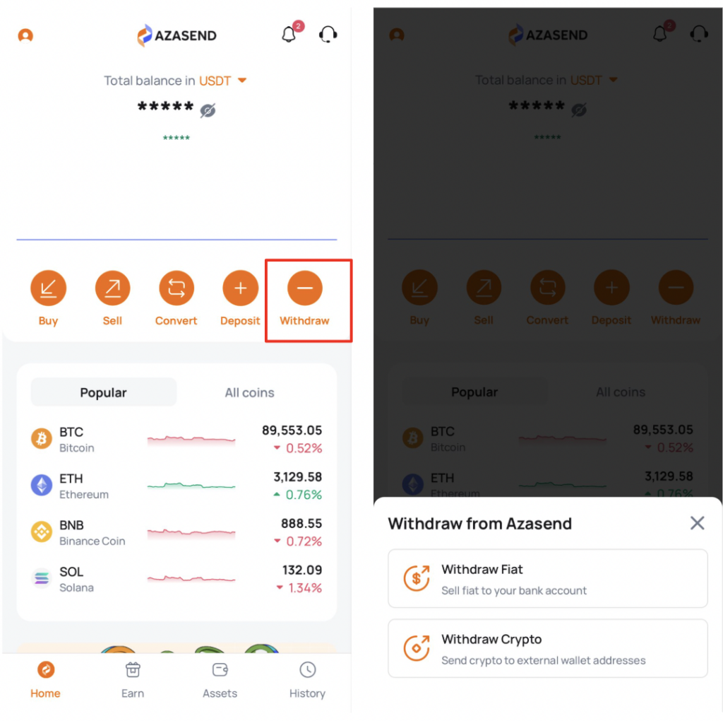 - Select Withdraw.